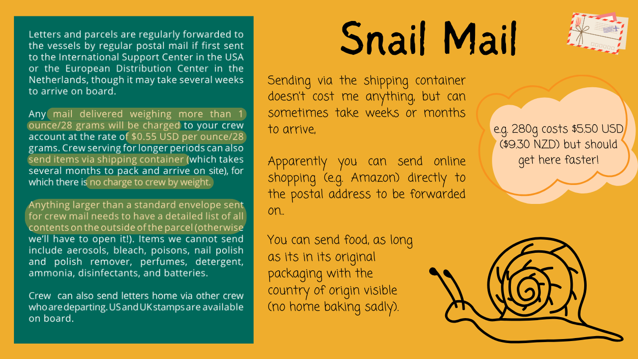 P.s. Feel like getting back into the old snail mail? Reply to this email for the postal address to send letters/ lightweight parcels via Crew Mail or heavier parcels via a shipping container.